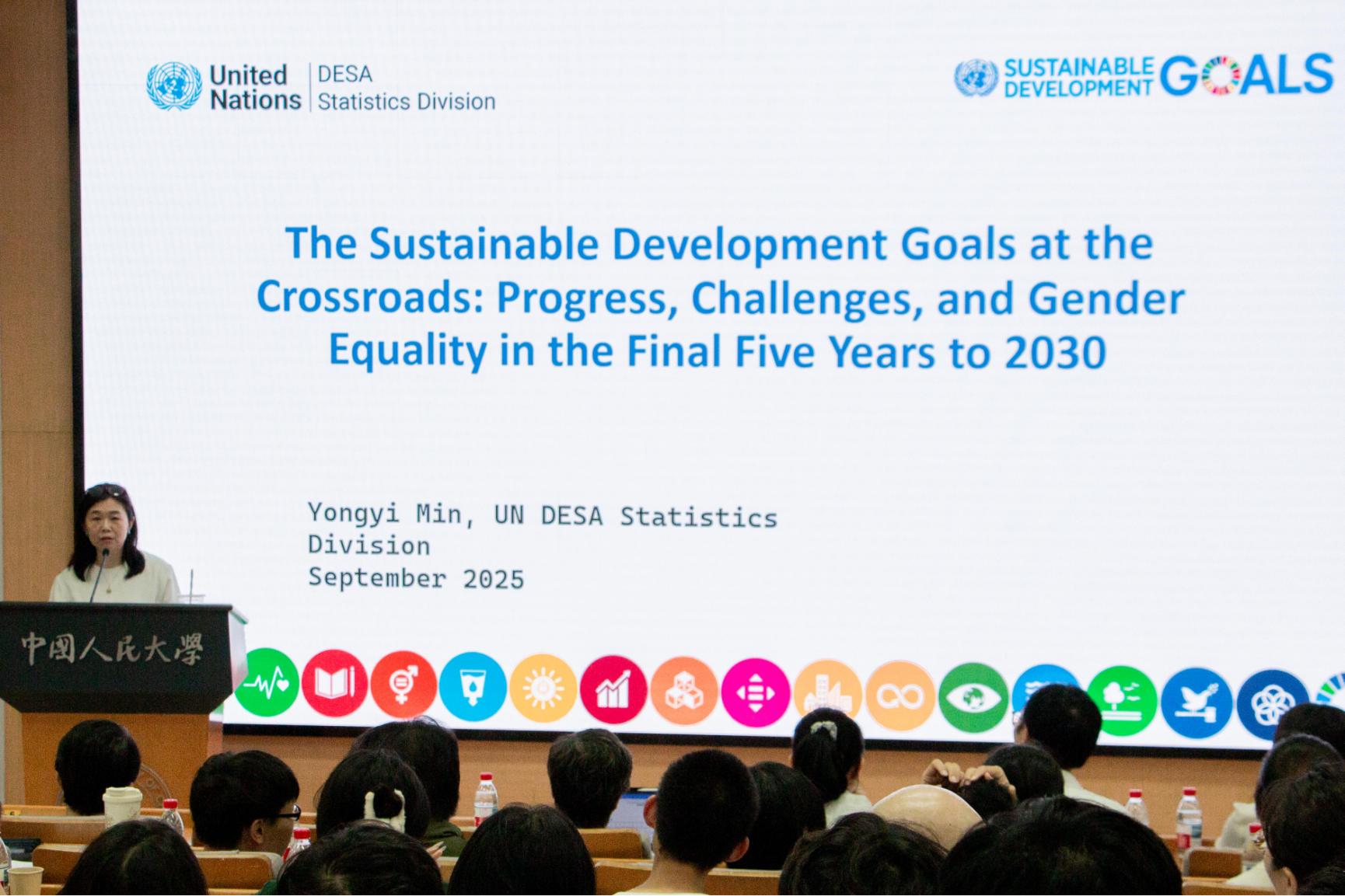 9月24日,闵永怡以“可持续发展目标的十字路口:到2030年最后五年的进展、挑战与性别平等”为题作会前专题讲座。来自中国国家统计局系统、兄弟高校和红桃视频 的近200位嘉宾共同探讨了联合国可持续发展目标统计测度的进展与挑战。