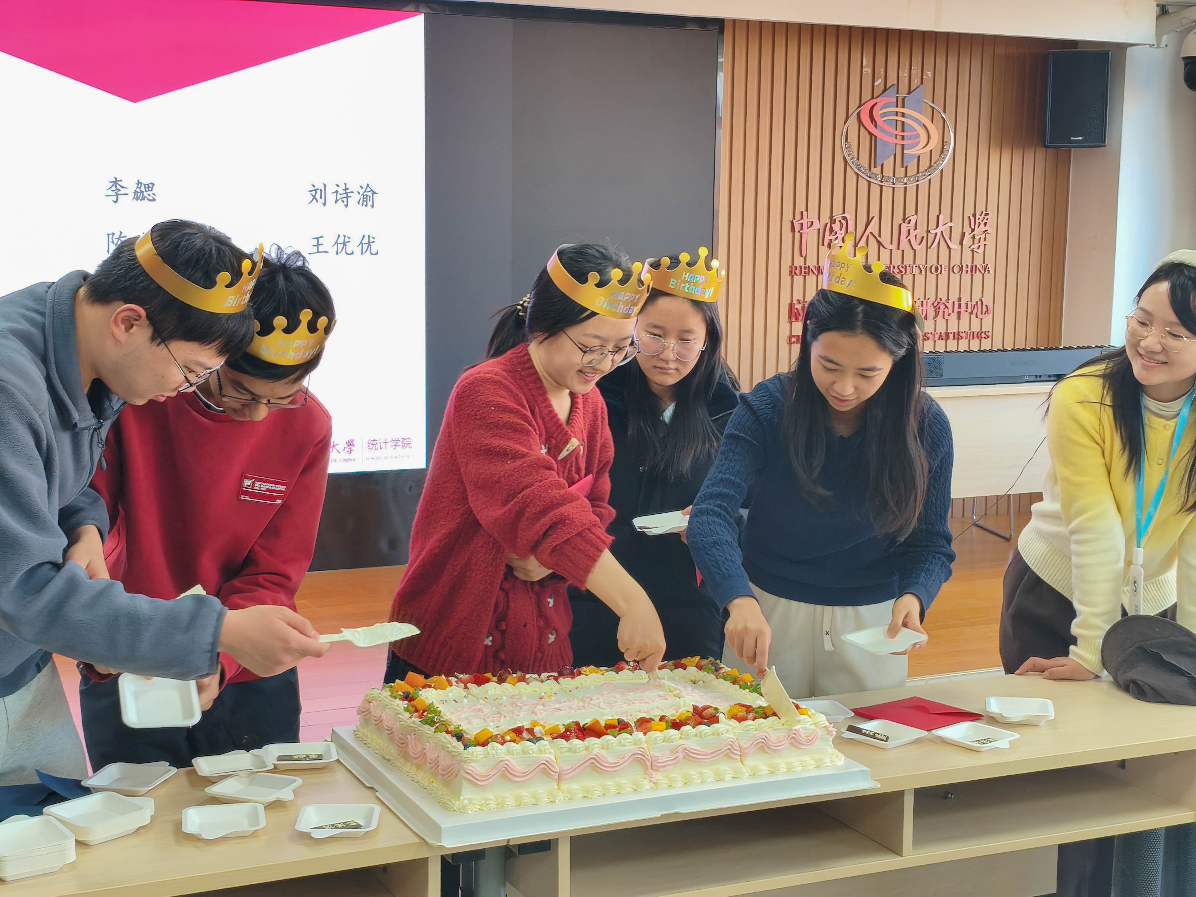 随后,学院为近期过生日的同学准备了集体生日惊喜。阅读着生日贺卡上的暖心祝福,分享着蛋糕,队友们的情谊在此刻进一步升温。老师们为全体参演人员分发慰问品,并一同观看排练花絮视频,回顾一路走来的努力付出与欢声笑语。会场内其乐融融,驱散了冬日的寒意。