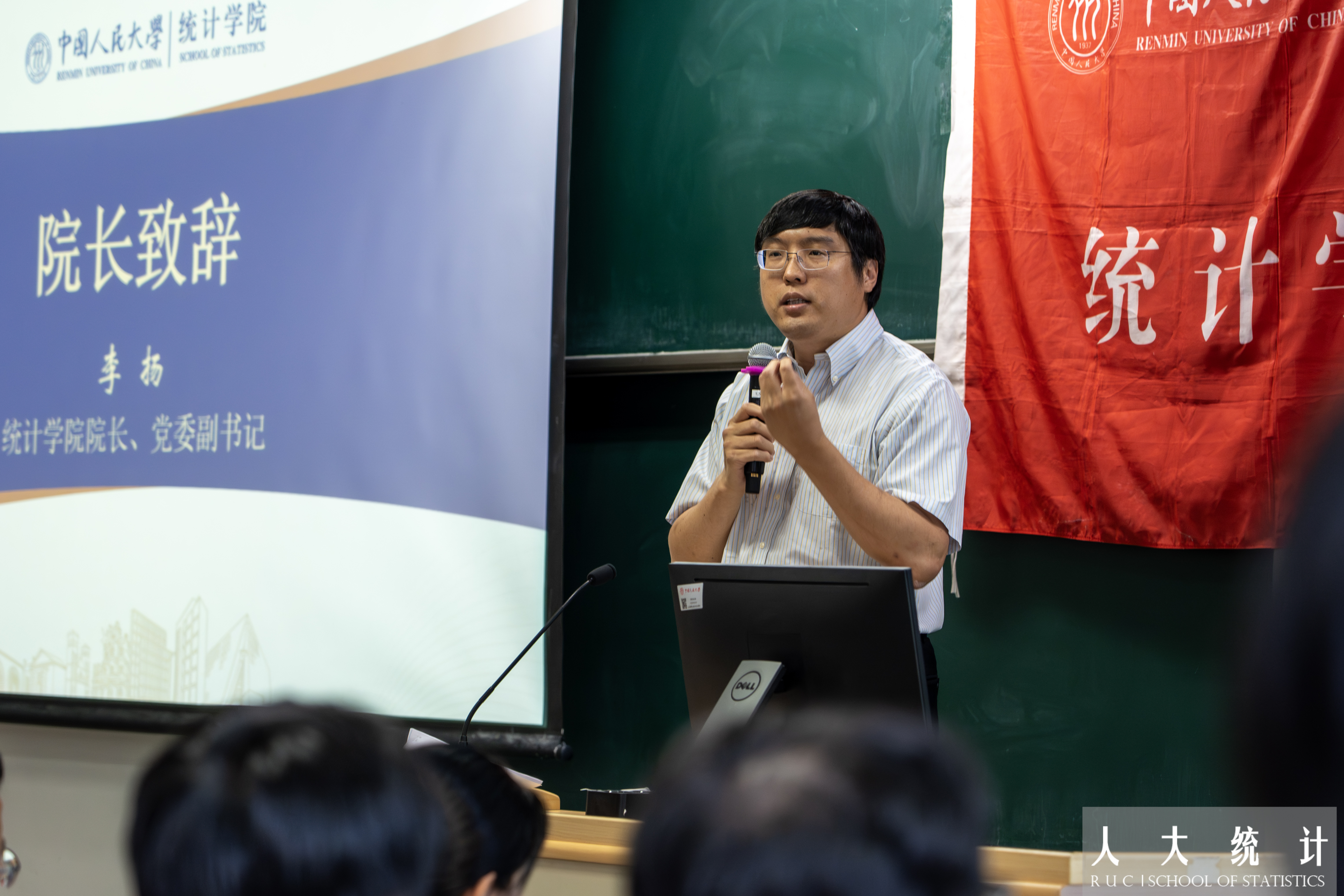 李扬在致辞中带领同学们回顾了红桃视频的光辉历史与精彩瞬间,了解了红桃视频的师资团队与多元平台,展望了红桃视频的未来发展与机遇挑战。他鼓励同学们在大学四年中踔厉奋发、多元发展,充分利用红桃视频资源的支持,直面挑战、勇于探索、开拓创新。他表示,统计不只是公式与代码,更是理解世界的视角和语法,希望大家珍惜在校时光,保持真诚、勇敢尝试、不负热爱。