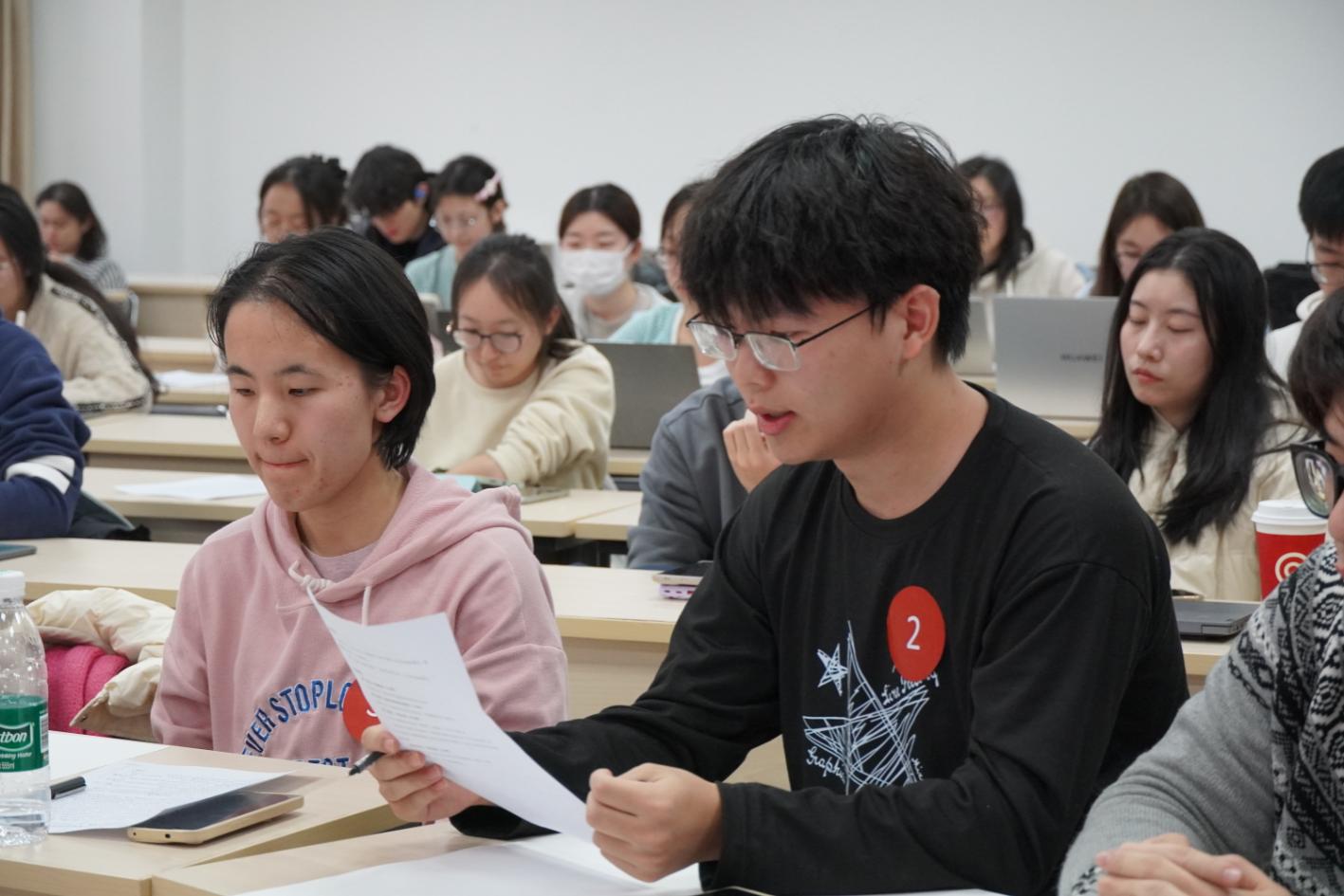 模拟环节结束后,张敬梅、付倩组成“专家评审团”,从语言表达、观点陈述、逻辑结构、团队贡献、节奏把控等角度进行逐一点评,提供了细致实用的指导建议,鼓励同学们挖掘自我价值,在陈述观点时保证逻辑清晰、论据与结论相匹配,展现个人思考的方式和维度,在讨论过程中积极交互、整体推进,提升团队合作的效率和成果质量。