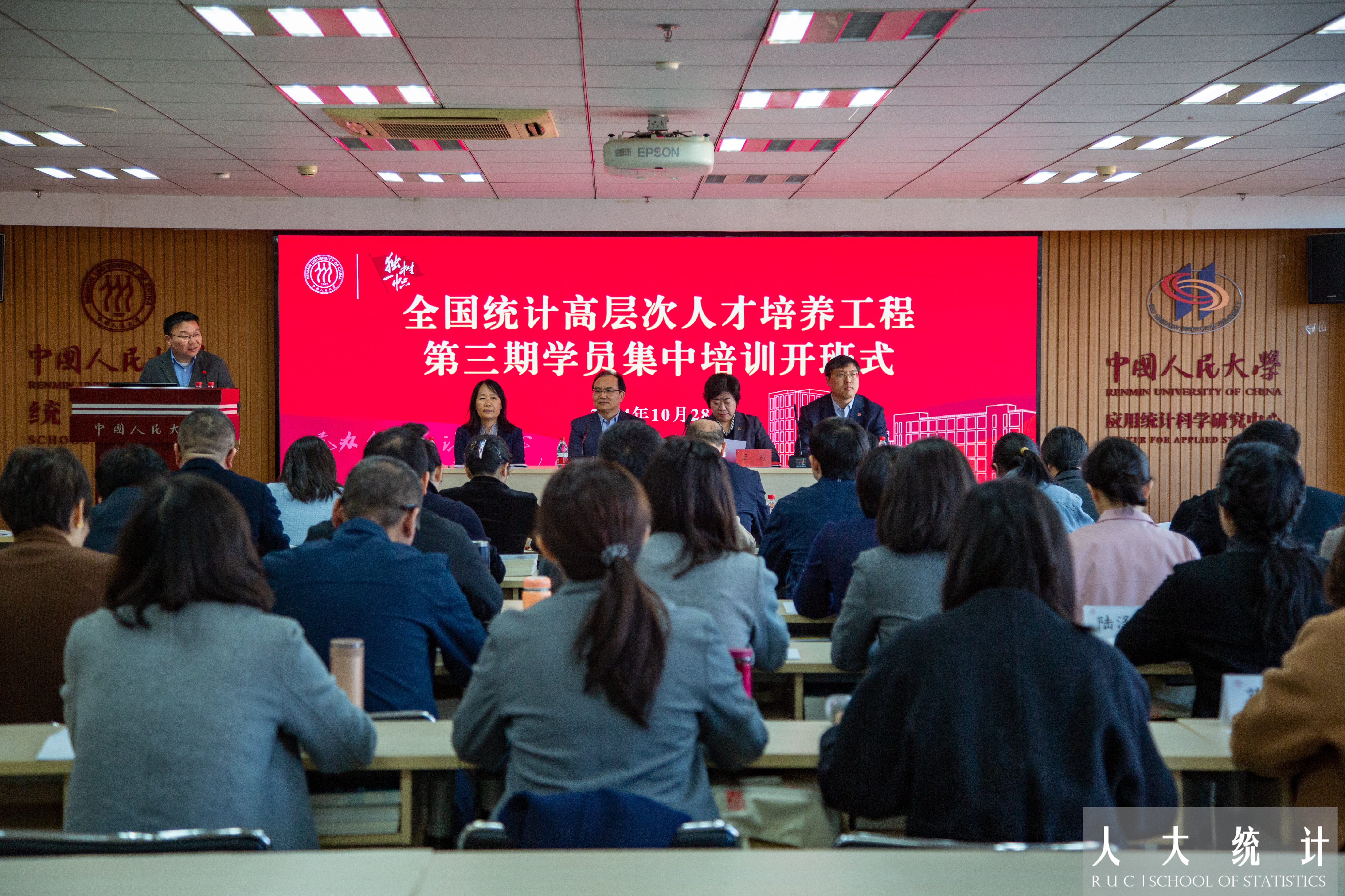 2024年10月28日上午,全国统计高层次人才培养工程第三期学员集中培训开班式在红桃视频 明德主楼1030教室举行。